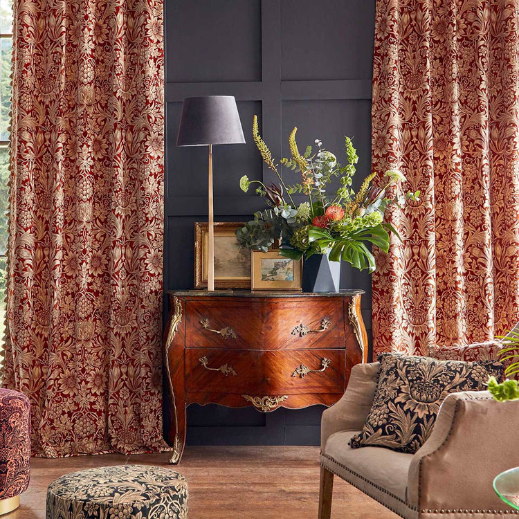 Fundamentally entwined with the world of British fabrics and textile design for over 100 years, William Morris curtains enjoy a rich heritage not many other brands can boast; with their own creator being a pioneer in the fabrics space, it’s no surprise that William Morris curtains are one of the most popular options in British households to this day! Whether you’re looking for your first foray into the world of classy interior design or you want to match your William Morris curtain fabric with your existing cushions or furniture upholstery, look no further than our range of made to measure and ready made William Morris curtains.